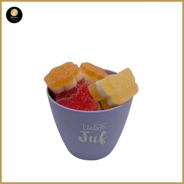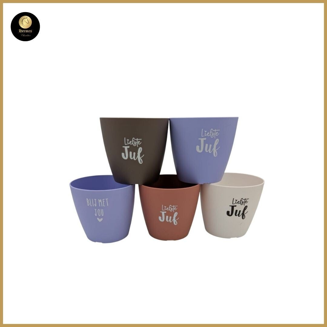 Een origineel én duurzaam bedankje voor een geweldige juf of meester! Dit leuke potje is bedrukt met een fijne boodschap en gevuld met heerlijke snoepjes of ambachtelijke pralines.