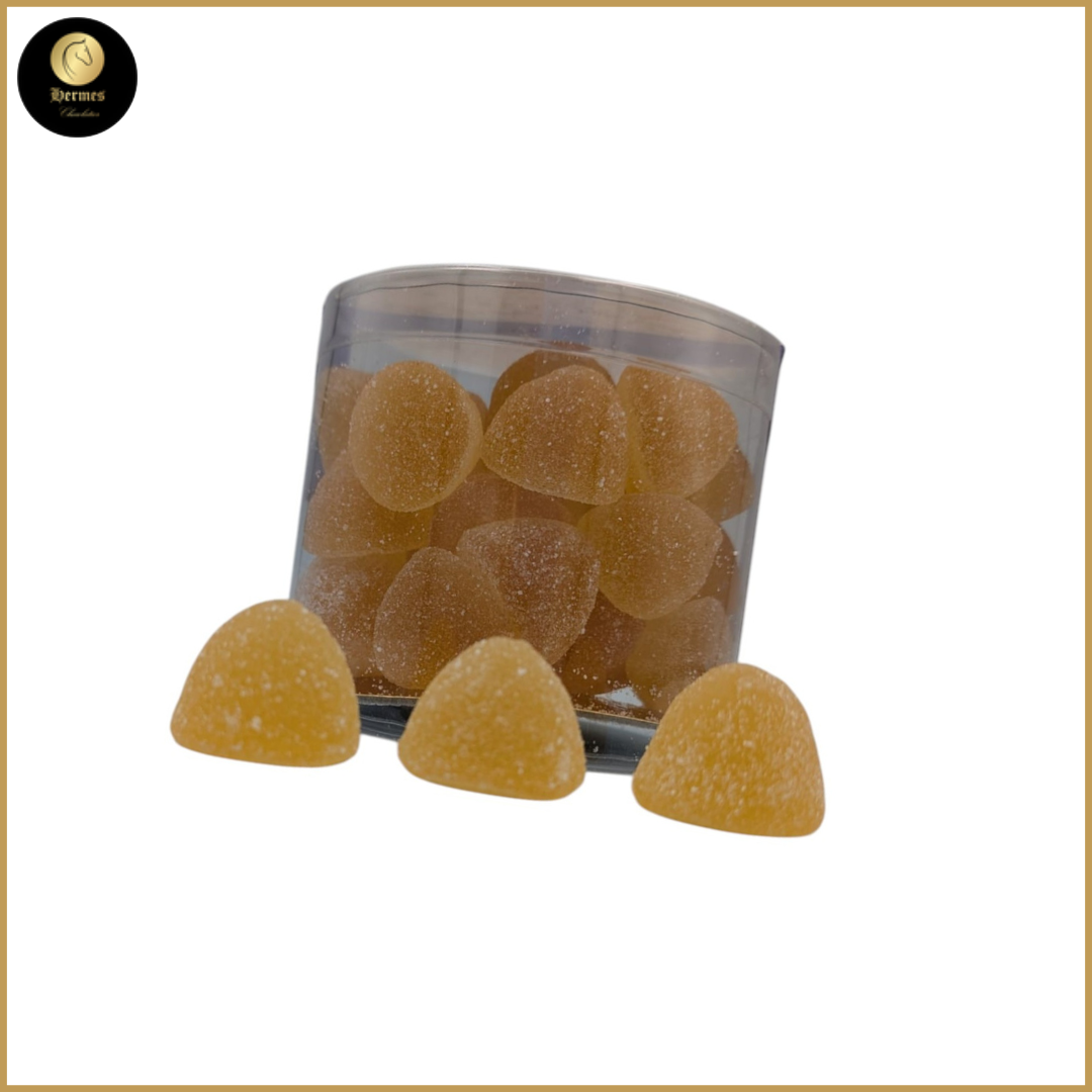 Een verrassende combinatie van frisse citrus en kruidige diepte. De yuzu brengt een levendige, aromatische frisheid met lichte bittertonen, terwijl jeneverbes een kruidig, verfijnd accent toevoegt dat de citrus prachtig in balans brengt. Het resultaat is een snoepje dat elegant, gelaagd en uitgesproken karaktervol is.