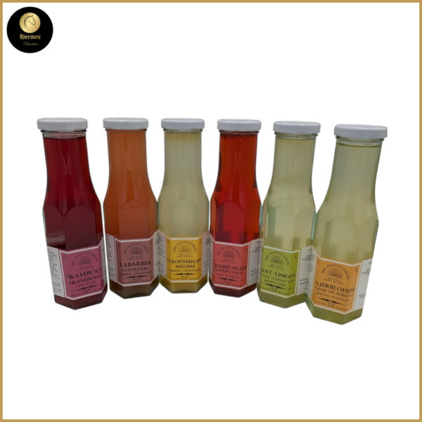 Het kleurenpalet van tarocco’s is zeer gevarieerd, zo ook de kleur van de siroopjes. Kan ook sporen van tijmblaadjes bevatten.