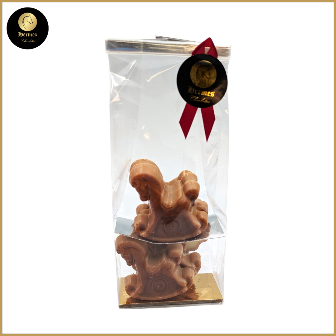 Laat je verleiden door deze ambachtelijke schommelpaardjes, gemaakt van wit gemarbreerde Belgische chocolade en gevuld met praliné. In elk zakje vind je 6 stuks, prachtig afgewerkt en perfect binnen het Sinterklaasthema.