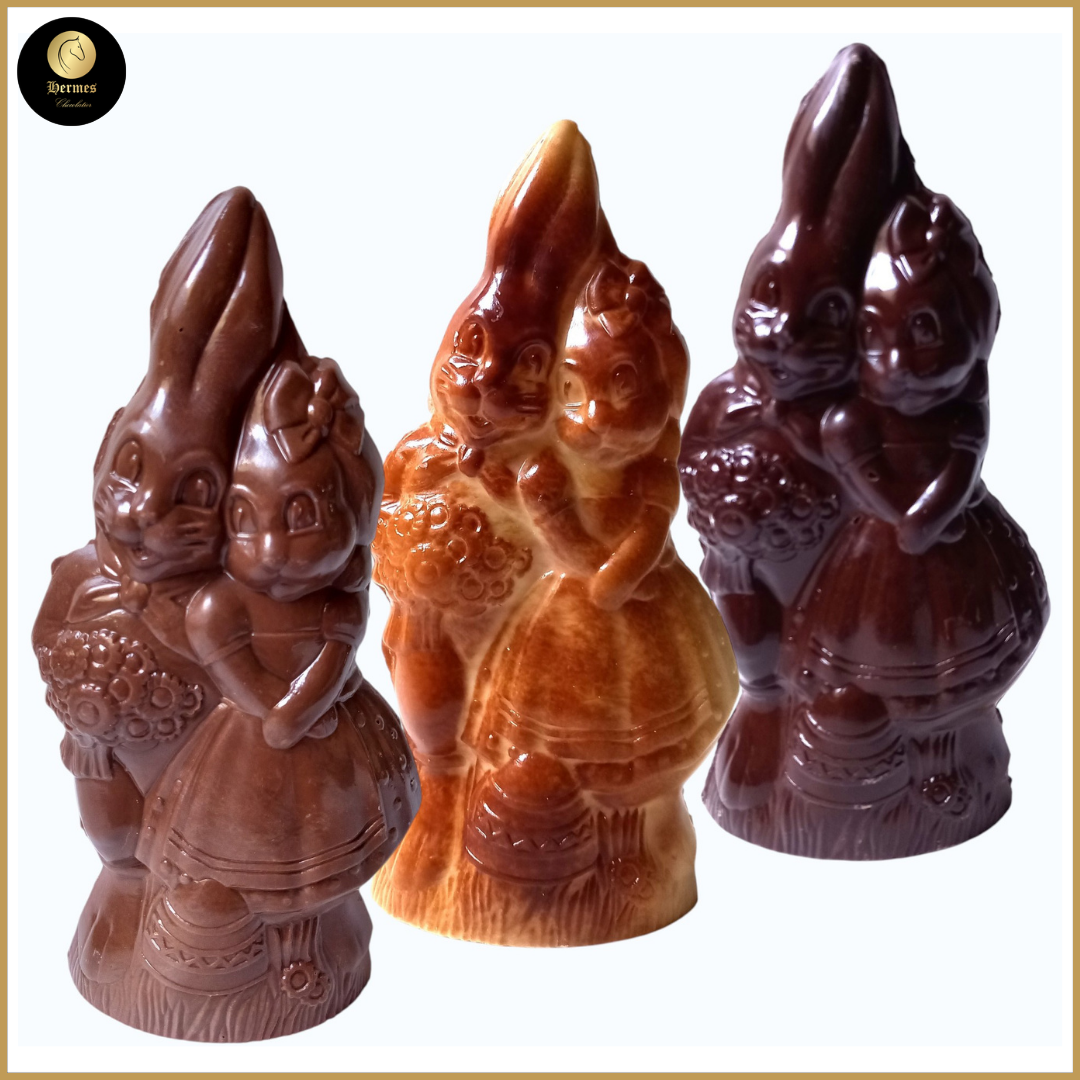 Koppeltje paashazen 18cm fondantchocolade - € 9,25